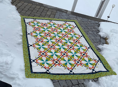 It is now in the “to be quilted” pile which should happen within the next few weeks as….