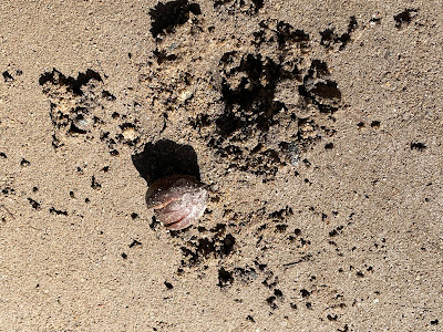 For a while as I have traveled on my walk back and forth on what I call the camp road (it’s really Old County Rd.) I have been noticing small round holes in the gravel road bed.