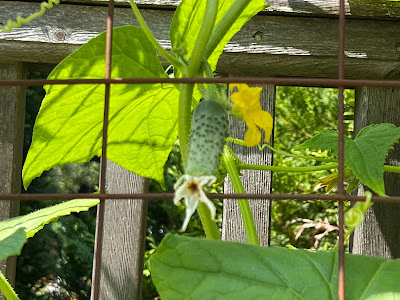 The plants are loving the sunshine and we have started getting cukes and tomatoes.